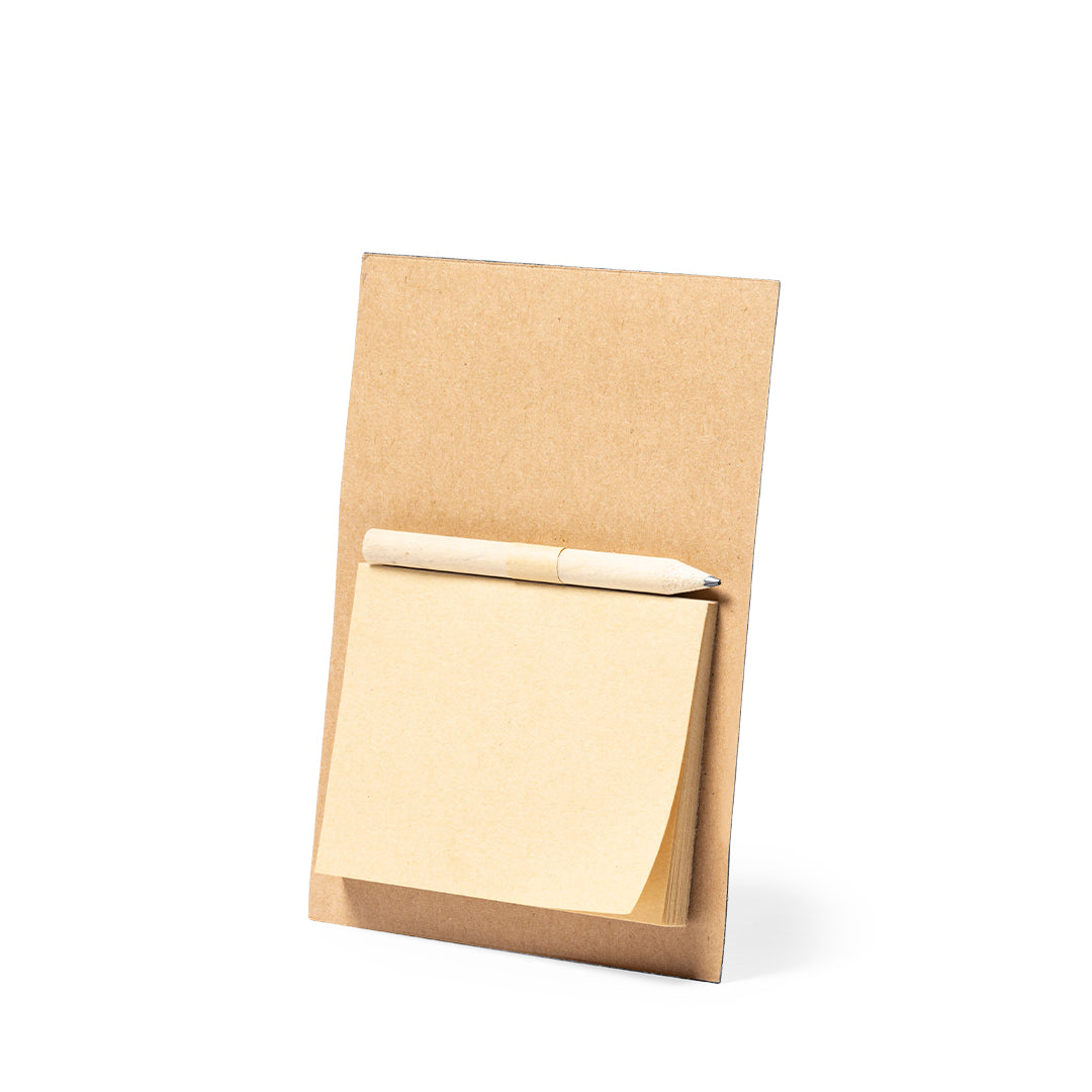 Imán para notas de línea nature. Fabricado en resistente papel reciclado, incluye minilápiz de madera y bloc de notas con 40 hojas lisas en color crema.