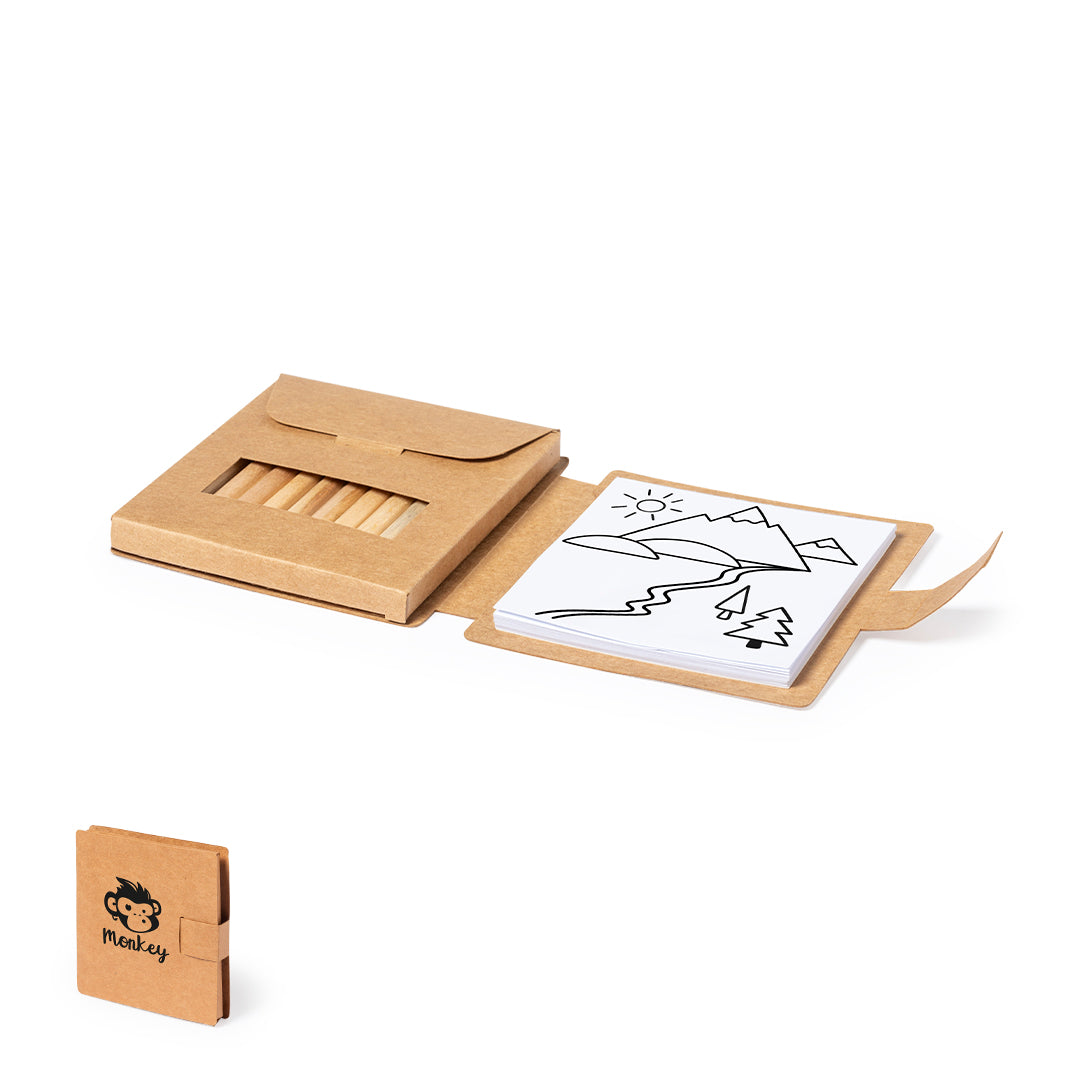 Set para colorear de línea nature fabricado en cartón reciclado y con cinta de cierre en solapa. Incluye: Bloc de 36 hojas con dibujos de naturaleza para colorearCaja de 12 lápices de madera con minas en multitud de colores.