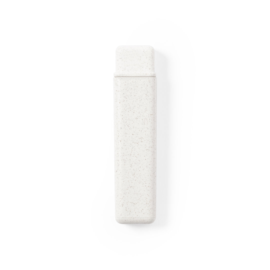 Cepillo de dientes plegable y de línea nature. Fabricado en caña de trigo, para así fomentar la utilización de materias primas naturales y reducir las emisiones contaminantes.