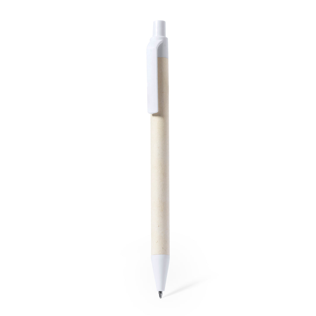 Bolígrafo de línea nature, con cuerpo fabricado con cartones de leche reciclados y detalles en color blanco. De mecanismo pulsador y en tinta azul, con distintivo cartón de leche reciclado en el cuerpo. Los cartones de leche se componen en su mayor parte de cartón y aluminio. Durante su proceso de reciclado, se separan los distintos materiales del envase para su reutilización y nuevo uso, contribuyendo así a recorrer el camino infinito de la economía circular. Este material se caracteriza por su alto grado de reciclabilidad, así como por su ligereza y resistencia.