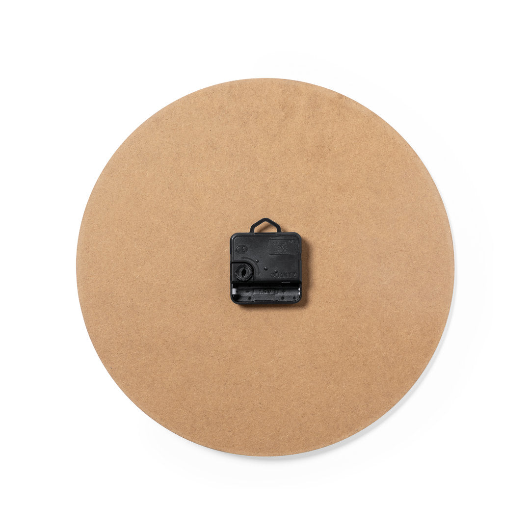 Reloj de pared fabricado en madera MDF y dial en blanco. Presentado en caja individual de diseño kraft. Alimentación a pilas (1xAA no incluida).