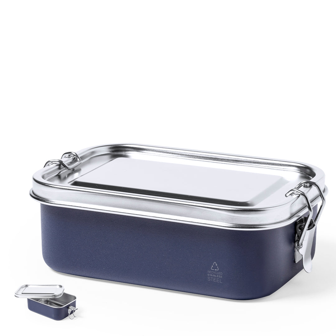Fiambrera de 1,4 l de capacidad, fabricada en PP libre de BPA. Dos compartimentos, cada uno de 700 ml de capacidad. Compartimentos interiores con tenedor, cuchara, cuchillo y separadores. Disponible en variada gama de colores, con cinta elástica de seguridad a juego. Certificación Food Grade, garantizando la seguridad cuando los alimentos entran en contacto con el material usado para fabricar el producto.
