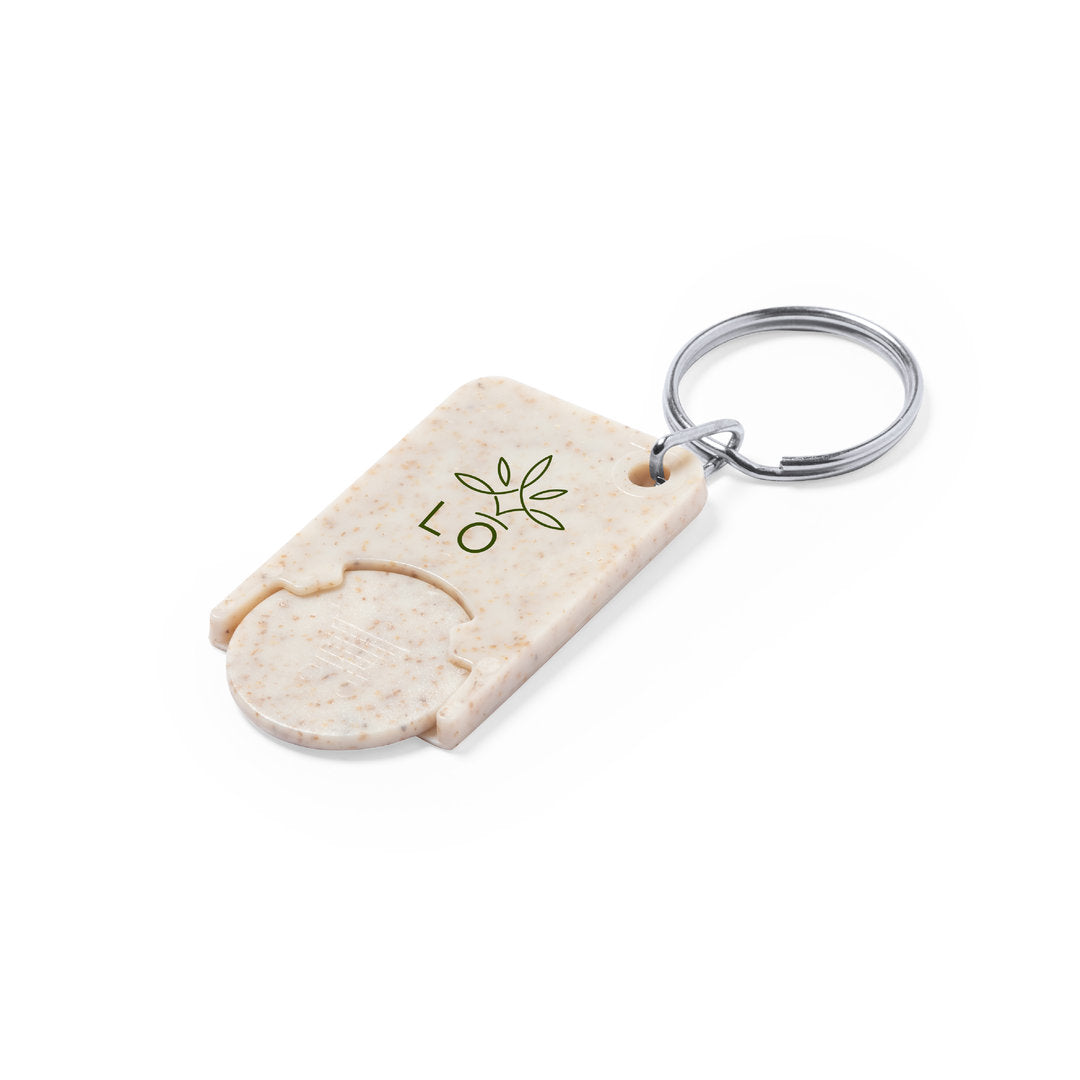 Llavero moneda de línea nature fabricado en caña de trigo. Con moneda extraíble y anilla metálica cromada.La caña de trigo fomenta la utilización de materias primas naturales, reduciendo así las emisiones contaminantes.