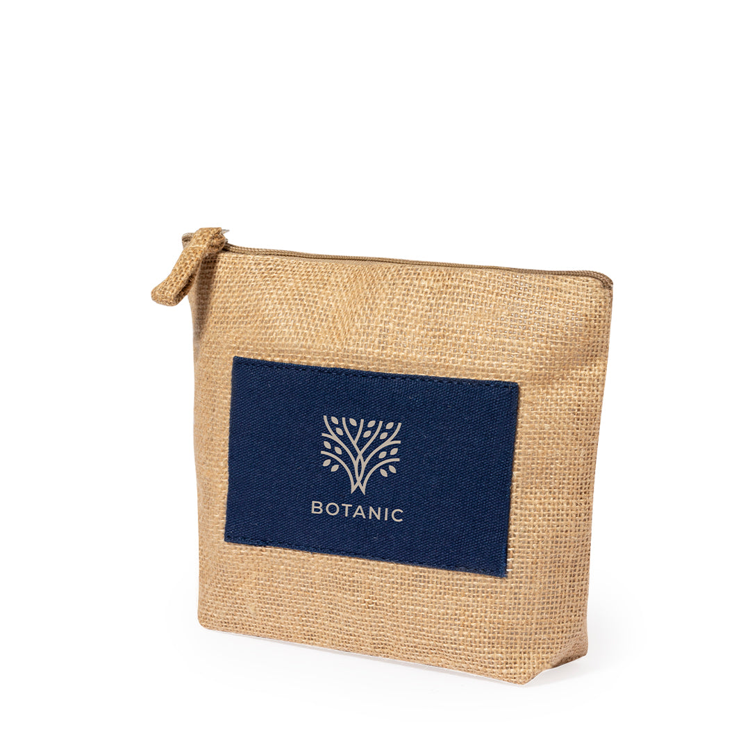 Neceser multiusos en combinación de yute laminado y algodón natural. Con cierre de cremallera y tirador en yute a juego. Parte central de algodón en variados colores.