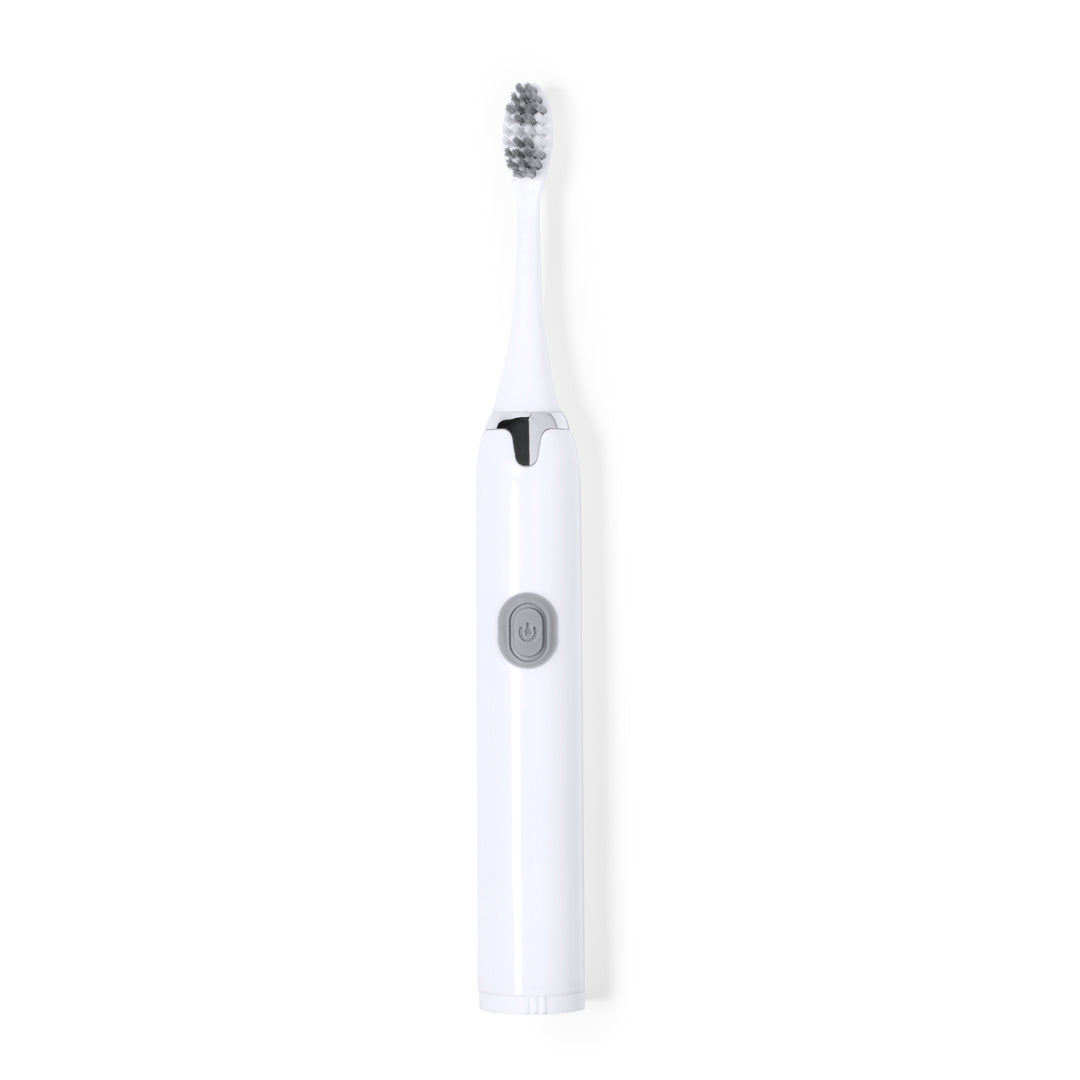 Práctico cepillo de dientes portátil eléctrico. Eficiente limpieza gracias a su función de vibración y a sus agradables cerdas. Funciona con 1 pilas AA (no incluida) introducidas por la base. En color blanco y plateado, presentado en una caja de diseño kraft.