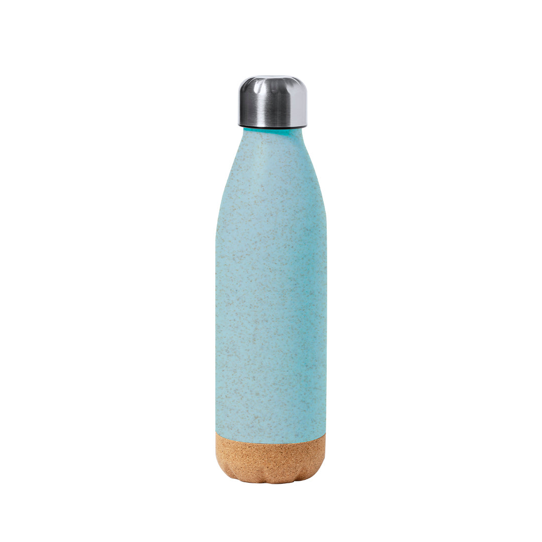 Bidón de 650 ml de capacidad, en combinación de PE veteado con base de corcho natural y tapón en acero inox.Tapón a rosca y libre de BPA. Disponible en variada gama de colores pastel mate y presentado en caja individual de diseño kraft.Certificación Food Grade, garantizando la seguridad cuando los alimentos entran en contacto con el material usado para fabricar el producto.