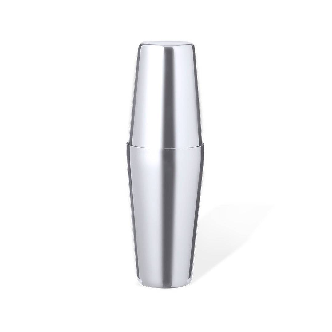 Coctelera de 500 ml fabricada en acero inox. Fabulosa coctelera compuesta de dos vasos en acero inox que encajan entre sí para un perfecto sellado, para preparar bebidas refrescantes. Presentada en caja de diseño kraft.