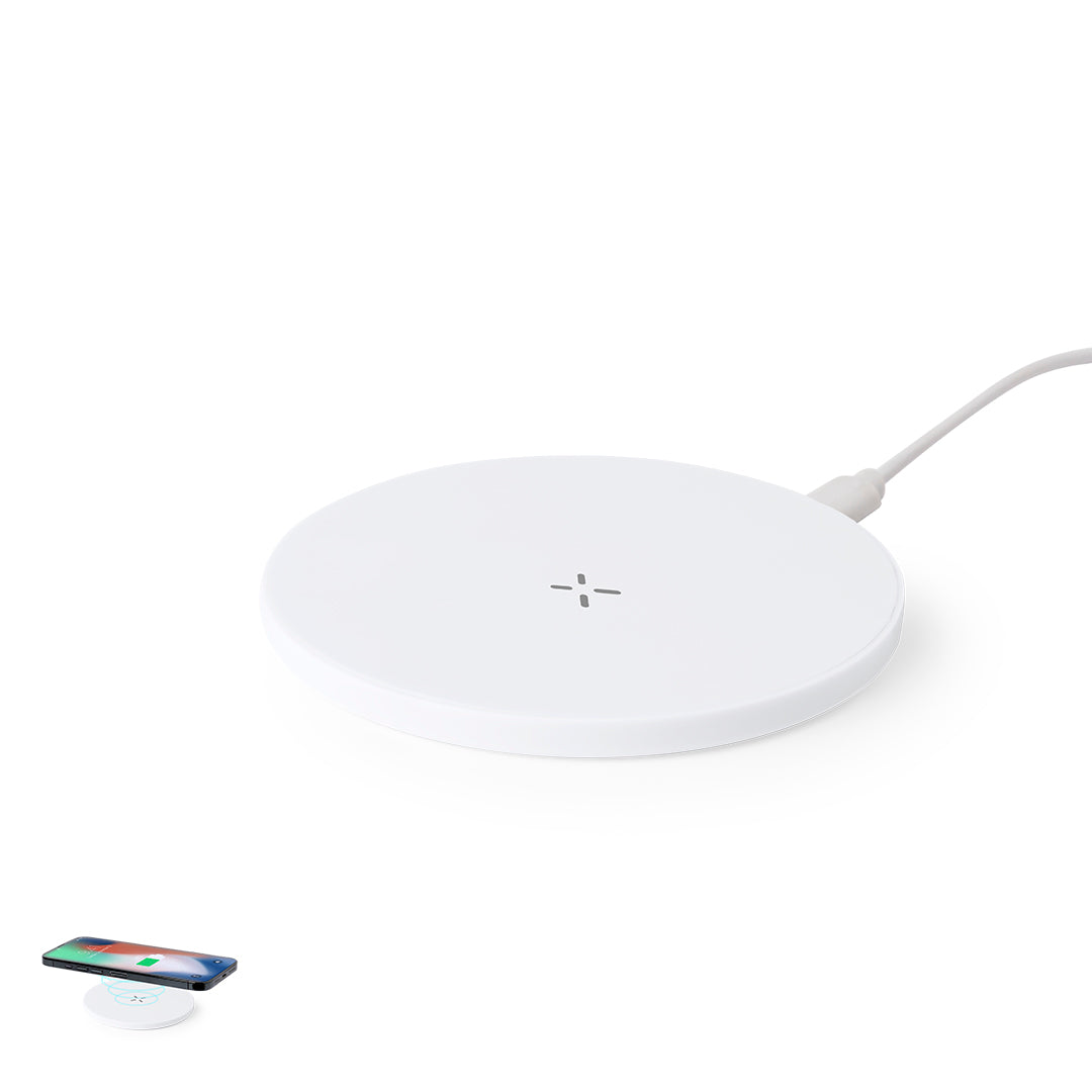 Cargador inalámbrico 15W de diseño circular fabricado en RABS. Compatible con dispositivos equipados con tecnología de carga inalámbrica Qi. Base antideslizante, con cable cargador Tipo C incluido. Presentado en caja individual de diseño kraft, con manual de instrucciones en español e inglés.El RABS es un plástico altamente reciclable de gran resistencia y con multitud de aplicaciones que lo convierten en una solución eco-friendly. Con certificación RCS, que garantiza el origen reciclado del mismo.Fabricado conforme a los estándares RoHS y en cumplimiento con los siguientes requisitos de seguridad:Sistema de protección contra sobrecalentamiento.Sistema de protección contra sobrecarga.Sistema de bloqueo para evitar cortocircuitos.