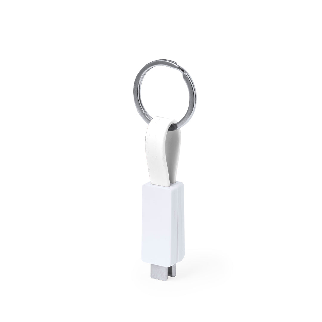Cargador llavero USB Tipo C. Con 65W de potencia y apto para transferir datos. Presentado en bolsa individual de papel reciclado.