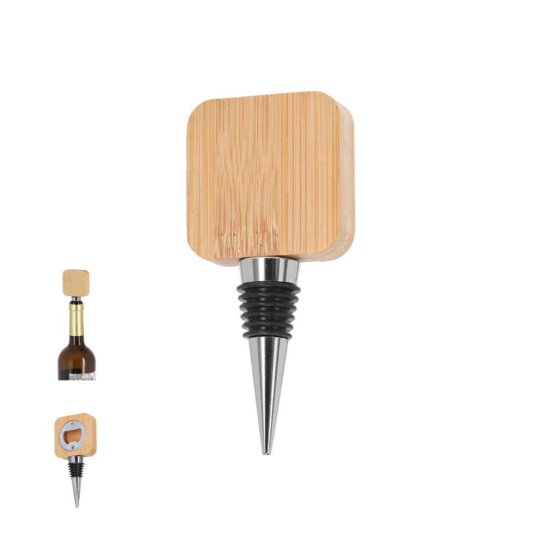 Práctico tapón para botellas con abridor integrado. Fabricado en bambú y acero inox. Incluye aros de silicona en el tapón para un ajuste perfecto al cuello de la botella.Materiales como el bambú fomentan la utilización de materias primas naturales reduciendo las emisiones contaminantes. Además, el bambú proviene de una planta de gran resistencia y versatilidad, con crecimiento y regeneración rápida, siendo una excelente alternativa al uso de madera tradicional.