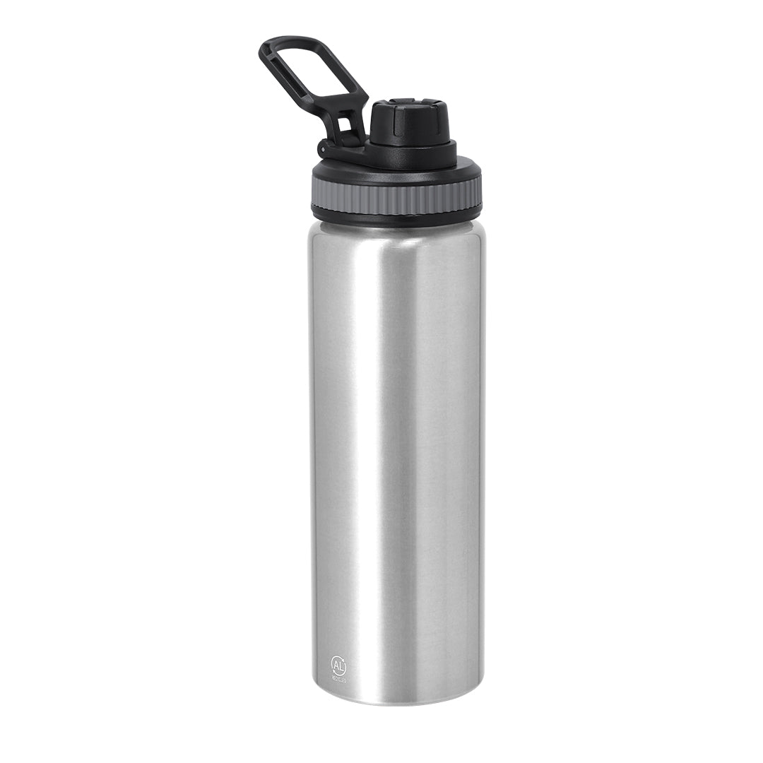 Bidón de Aluminio Reciclado con 800 ml de capacidad. Incluye tapadera color negro con sistema de cierre a rosca, agarre de silicona gris para un óptimo sellado, dosificador y asa para transporte ajustable. Incluye distintivo Aluminio Reciclado.El aluminio reciclado es un material con posibilidades de reciclaje casi infinitas, sin perder sus propiedades originales y consumiendo menos energía en este proceso.Certificación GRS (Global Recycled Standard / Estándar de Reciclaje Global), que garantiza el origen reciclado del material usado para fabricar el producto.