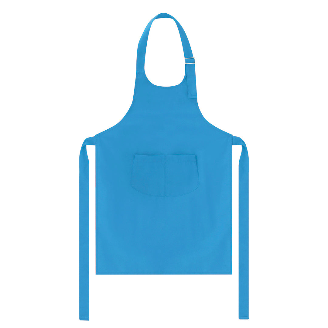 Delantal infantil de alta calidad fabricado en combinación de algodón y poliéster. Con práctico bolsillo doble frontal y cintas de cuello con ajustador cromado. De corte por debajo de la rodilla que proporciona una excelente cobertura.