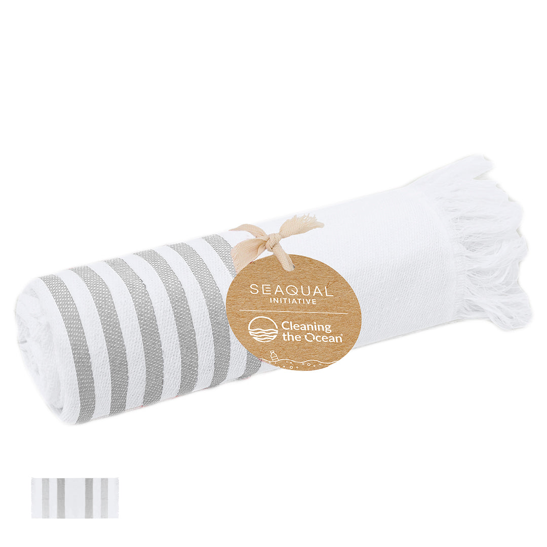 Suave pareo-toalla de 300 g/m², confeccionado en una combinación de algodón reciclado y poliéster reciclado SEAQUAL.Su diseño presenta una base en blanco combinada con rayas de color y decorada por distinguidos flecos en los extremos. Incluye etiqueta con diseño SEAQUAL, que certifica su origen sostenible y su contribución a la limpieza de océanos. SEAQUAL INITIATIVE trabaja con colaboradores y autoridades para ayudar a limpiar nuestros océanos. Los residuos marinos de nuestras playas, fondos y superficies oceánicas, ríos y estuarios son recogidos por programas de limpieza. Luego se clasifican en diferentes tipos de materiales y la porción de plástico se limpia y se transforma en PLÁSTICO MARINO RECICLADO, una materia prima completamente trazable y que crea productos sostenibles e inspiradores. Al elegir productos que contienen PLÁSTICO MARINO RECICLADO, estás ayudando a limpiar nuestros océanos.JUNTOS POR UN OCÉANO LIMPIO.