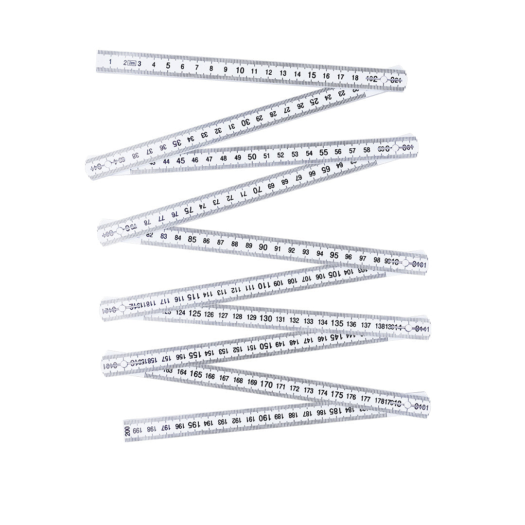 Regla plegable de 2 metros en resistente fibra de vidrio. Con escala en centímetros de color negro visible por ambas caras. Con posiciones posiciones ajustables a 90º, 180º y 270º para mayor versatilidad.