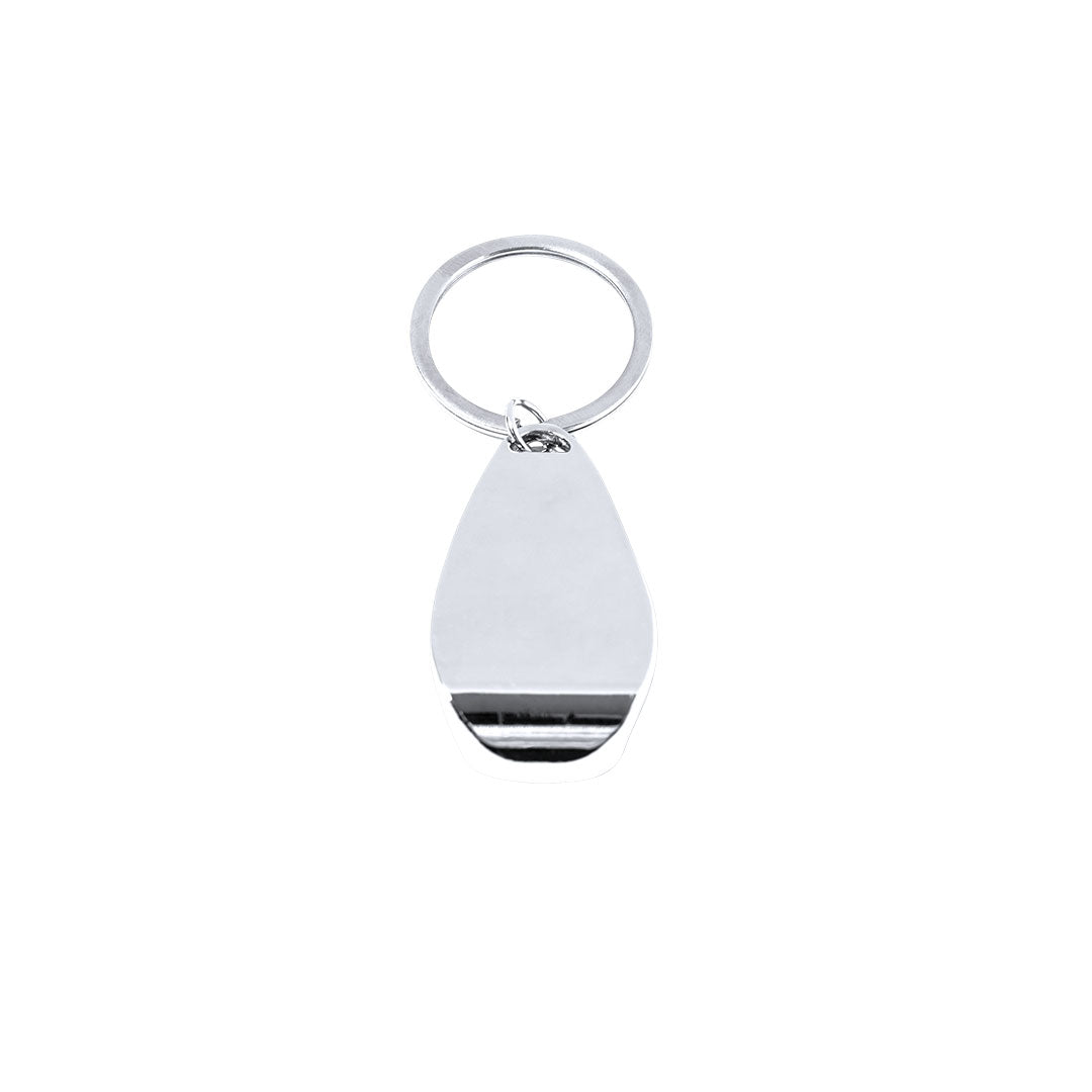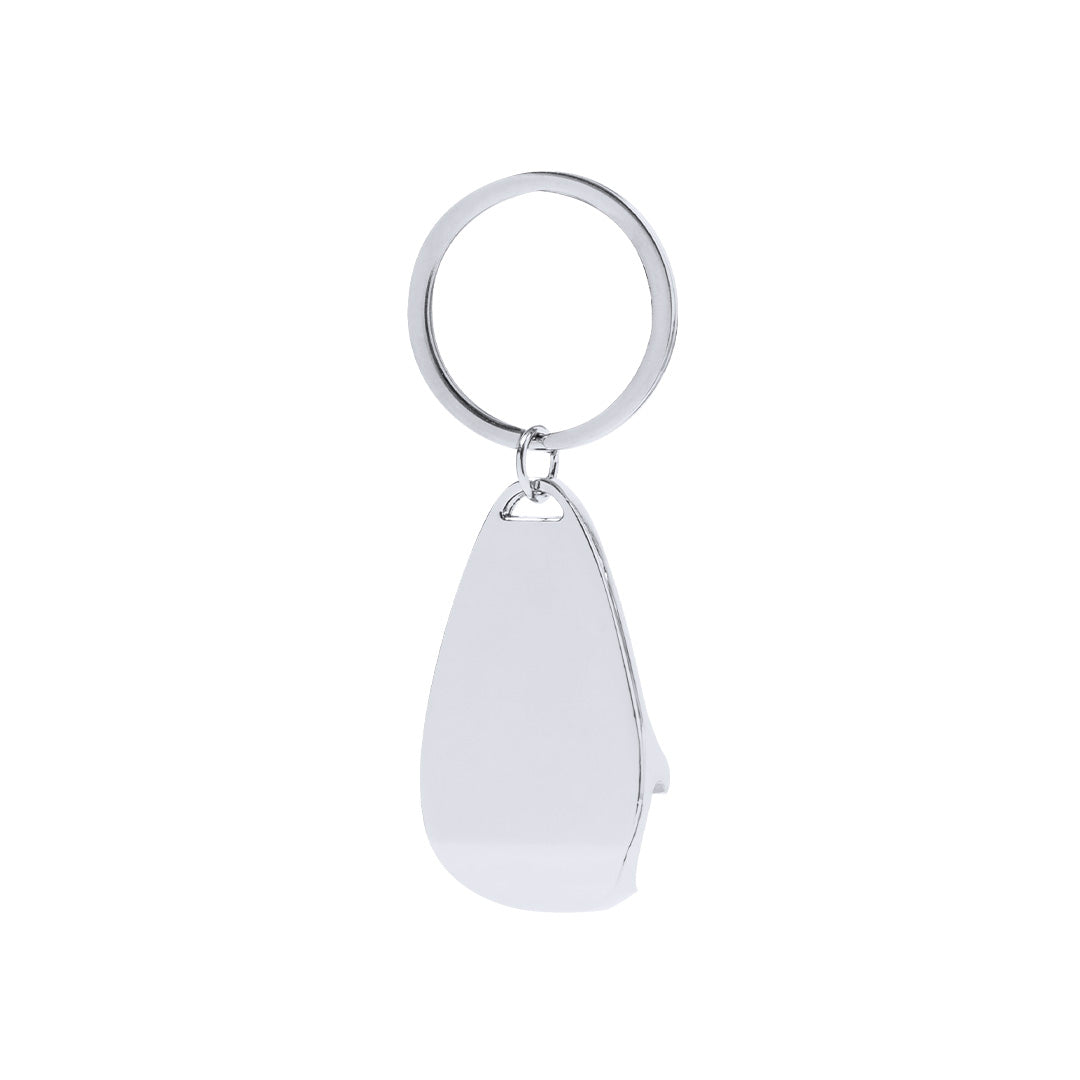 Llavero abridor de metal en acabado.