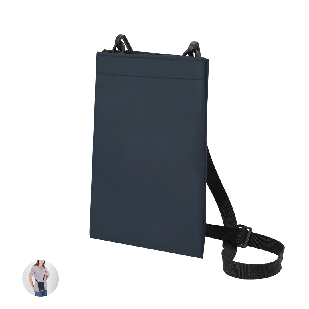 Portatodo fabricado en suave PU. Compartimento principal con cierre de velcro y amplia entrada con fuelle extensible. Incluye cinta ajustable plana con doble enganche de mosquetón giratorios.