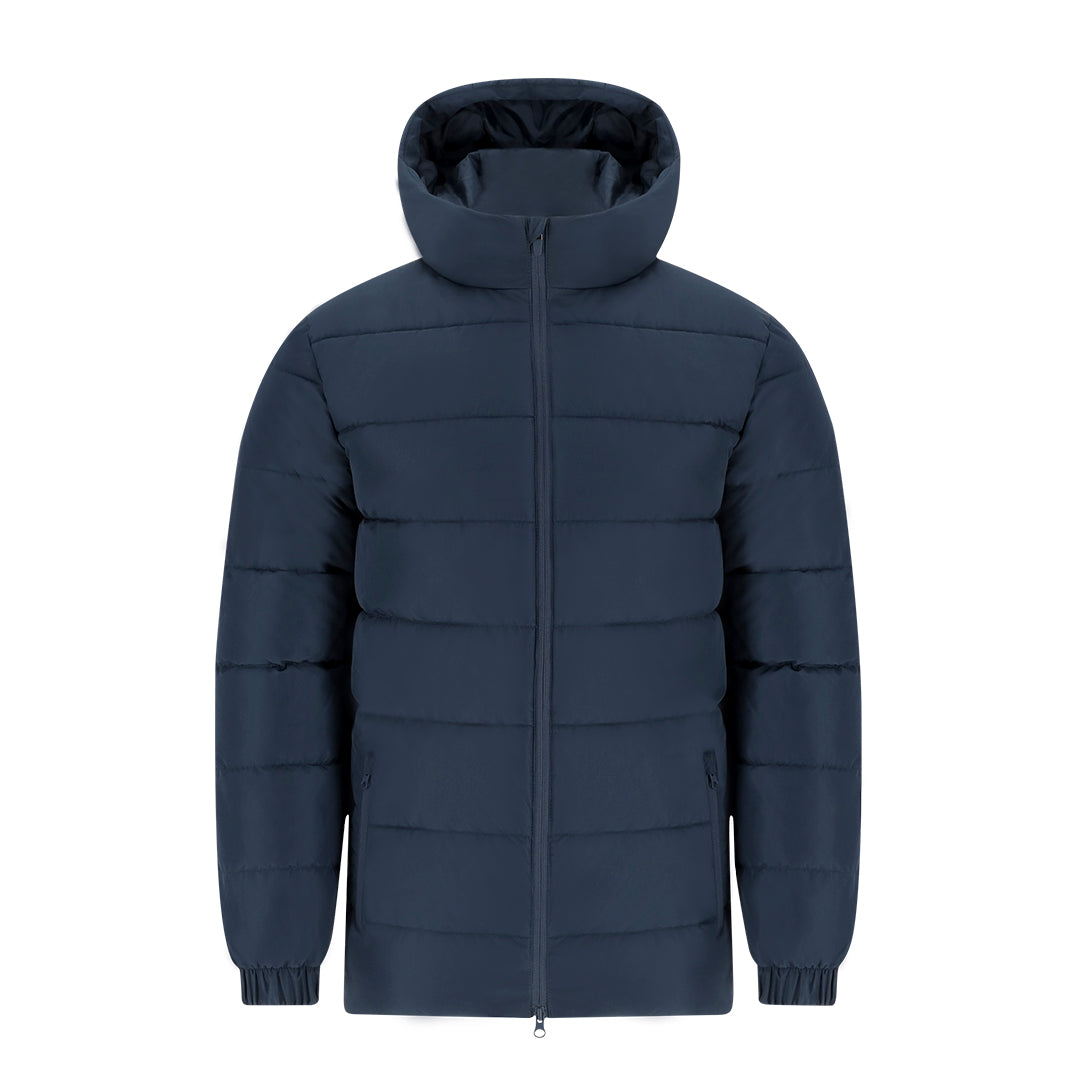 Parka infantil unisex acolchada con capucha fija y visera integrada. Incorpora cremallera frontal a tono con doble tirador y protector de barbilla. Puños elásticos para un ajuste cómodo y dos bolsillos laterales con cierre de cremallera a juego. Incluye acceso interior para marcaje en pecho izquierdo y espalda, ideal para personalización.