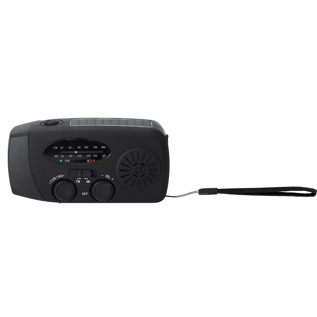 Radio Multifunción de Emergencia fabricada en resistente ABS. Ofrece una amplia gama de funciones útiles para el uso diario, actividades al aire libre o situaciones de emergencia. Incluye: - Radio de banda dual: FM / AM - Linterna LED, con modo SOS - Panel de Carga Solar - Carga Manual con sistema dinamo ajustable de 360° - Batería recargable de 2000 mAh - Antena plegable de alta sensibilidad - Entrada Tipo C y salida USB Una solución funcional para mantenerse siempre conectado y preparado.