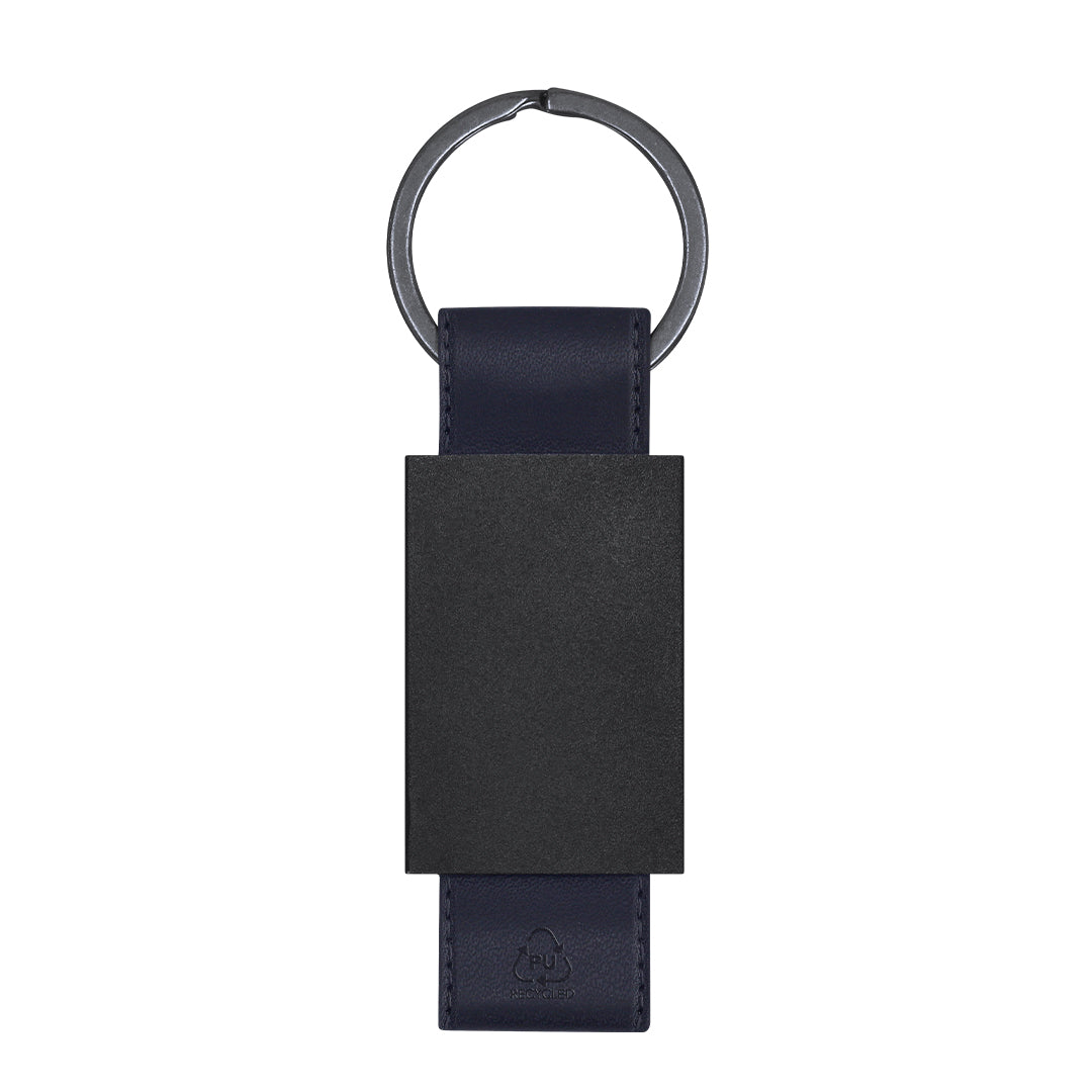 Llavero de divertido diseño con cinta de PU reciclado. Con cuerpo negro en acabado mate.