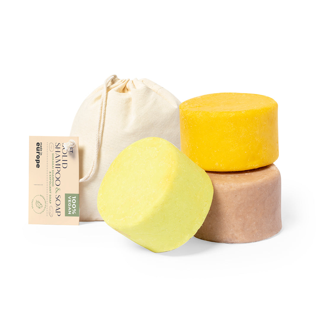Set vegano de champús. Contenido: 1 x champú sólido Shikakai de 30 gr, elaborado con una selección de ingredientes activos como la oliva virgen, manteca de karité bio, zanahoria y extractos botánicos de shikakai. Rico en vitamina E, aportando al cabello limpieza, sedosidad y vigor. De agradable fragancia que aporta un estado de placer y bienestar interior. 1 x champú sólido Amalaki de 30 gr, con extractos de plantas y especias. Enriquecido con cúrcuma, amalaki, aguacate, oliva, jojoba, rosa damascena, pomelo blanco y naranja, que aportan una hidratación profunda y un brillo impresionante. 1 x champú sólido Ghassoul de 30 gr. Con ghassoul procedente de Marruecos, aportando flexibilidad, volumen y brillo sin alterar la queritina natural. Rico en manteca de karité, aportando hidratación y suavidad. La mandarina aporta brillo y los aceites esenciales de incienso, geranio, lavanda y rosa le dan un aroma cautivador que te llevará a un estado de equilibrio y paz. Presentación en bolsa individual de algodón, con cierre de cordón y etiqueta distintiva. Dermatológicamente testado y de fabricación europea. Producto sostenible y 100% vegano, sin ingredientes de procedencia animal. Además, no se han realizado pruebas de estos productos en animales, promoviendo el cuidado y respeto de todos ellos.