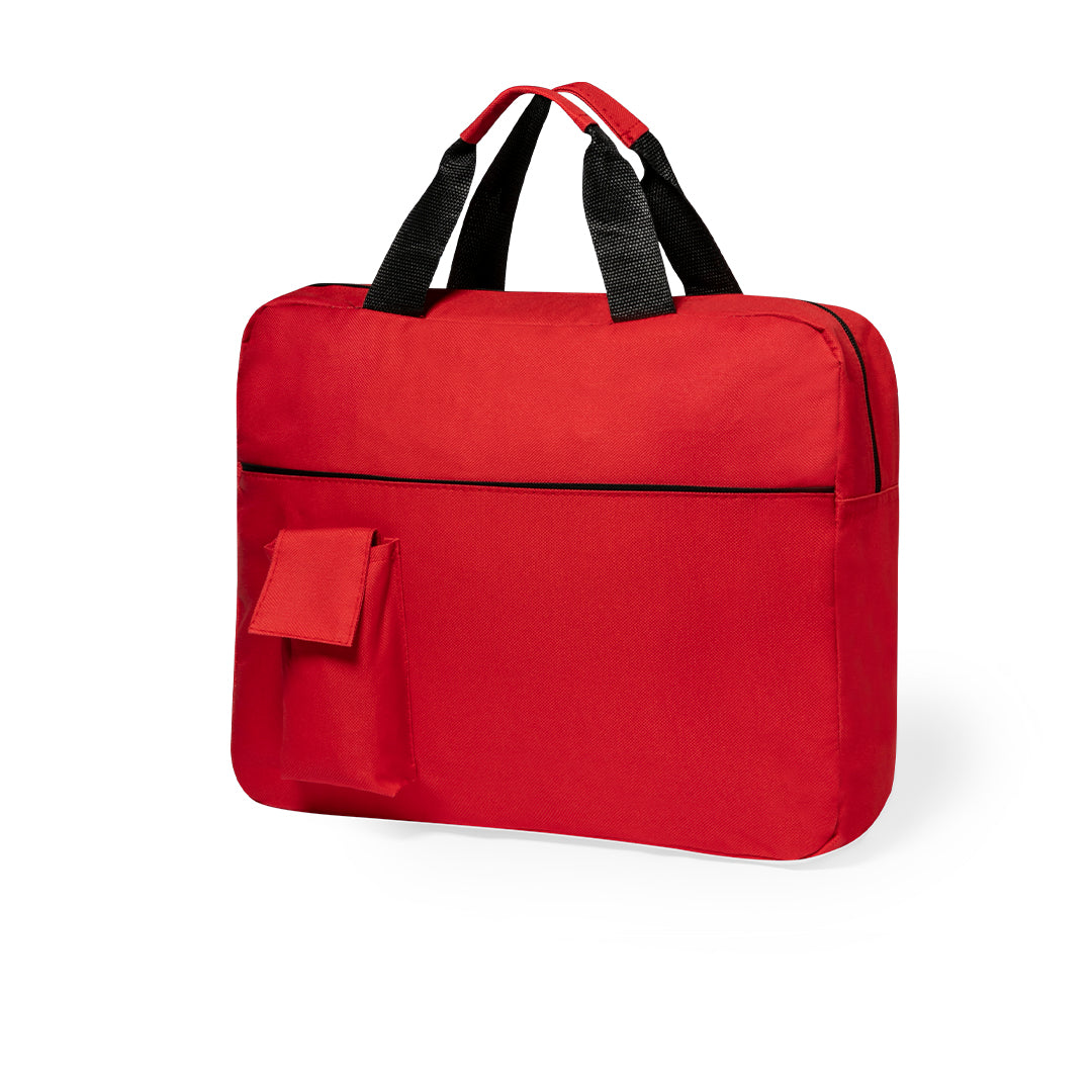 Portadocumentos de cierre de cremallera en suave acabado de poliéster 600D de vivos colores. Con asas de transporte con refuerzo a juego y bolsillo frontal para smartphone con cierre de velcro.