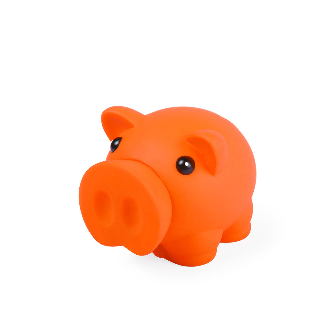 Hucha cerdito con suave cuerpo de acabado goma en vivos colores.