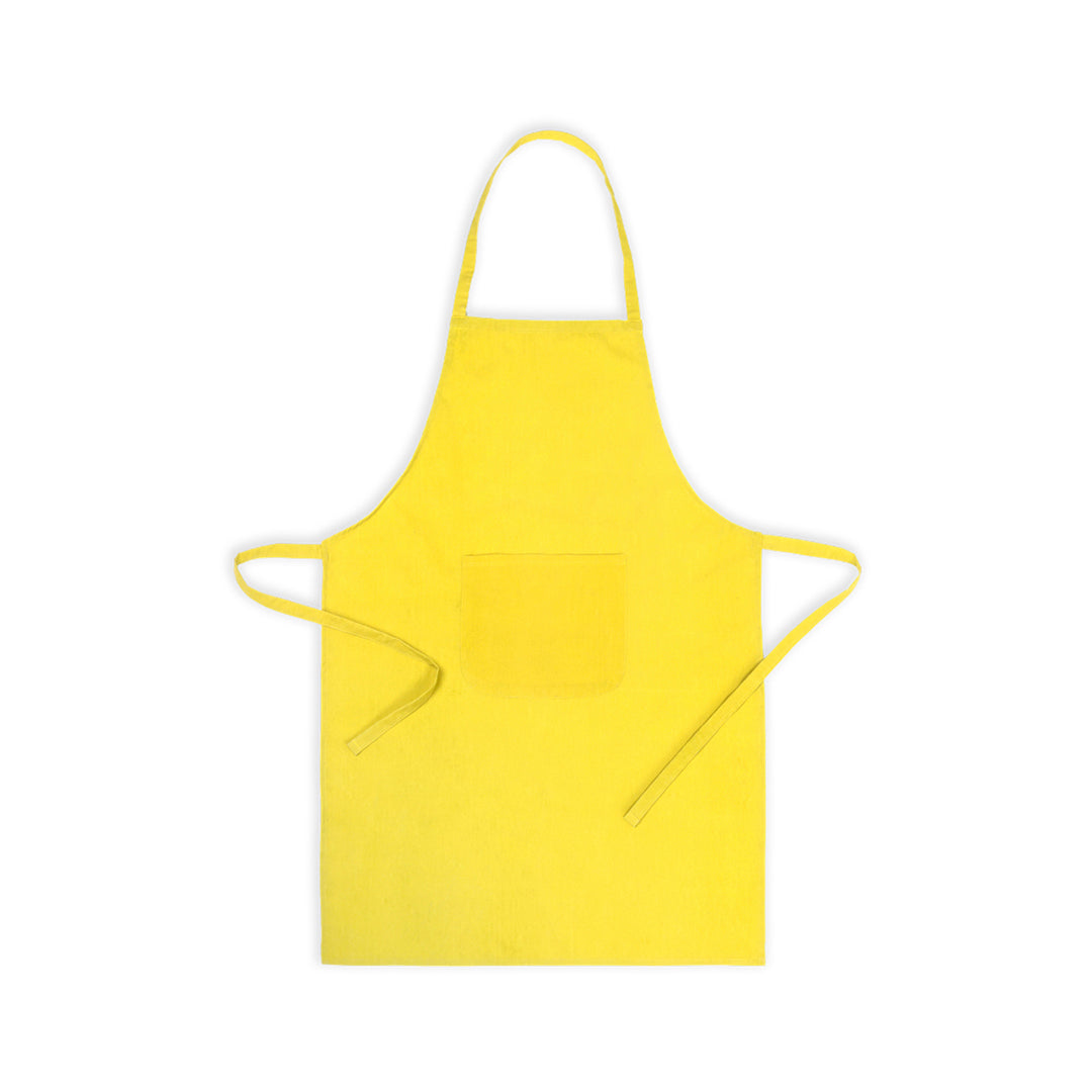 Delantal fabricado en tejido TC, combinación de algodón y poliéster. En el frontal incluye un práctico bolsillo, con cordones ajustables en la cintura y corte por debajo de la rodilla. Disponible en amplia gama de colores.