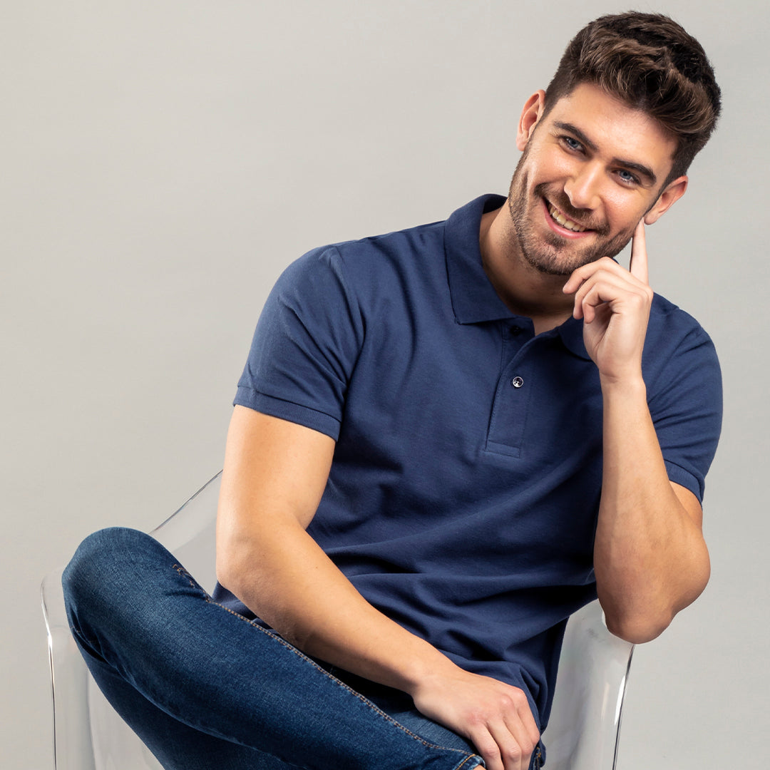 Polo de piqué en material 100% algodón. Con dos botones de cierre a juego y disponible en variada gama de vivos colores. Tallas S, M, L, XL, XXL