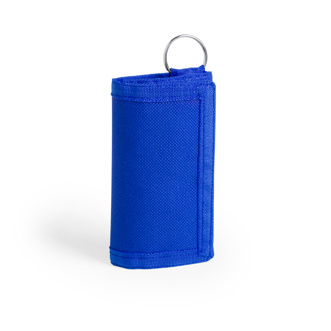 Llavero monedero en resistente poliéster 600D de vivos colores y cierre de velcro. Interior con monedero de cierre de cremallera, compartimento para tarjeta y anilla llavero.