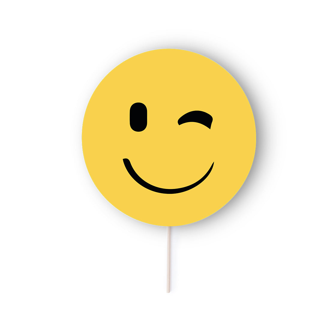 Selfie Pai Pai en divertidos diseños emoji y llamativo color amarillo. En papel de alto gramaje y con mango de madera. Disponible en diseños corazón, gafas de sol, guiño y sonrisa.