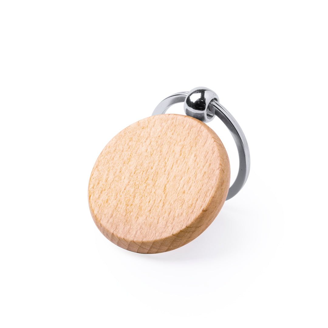 Elegante llavero de línea nature fabricado en madera natural de haya. Con amplia superficie de marcaje y disponible en diseños rectangular y redondo.