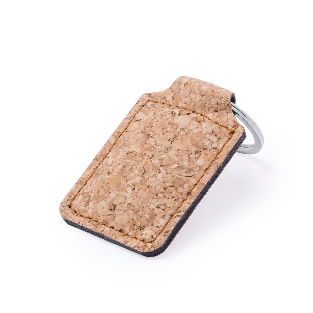 Elegante llavero de línea nature fabricado en corcho natural. Con amplia superficie de marcaje y disponible en diseños rectangular y redondo.