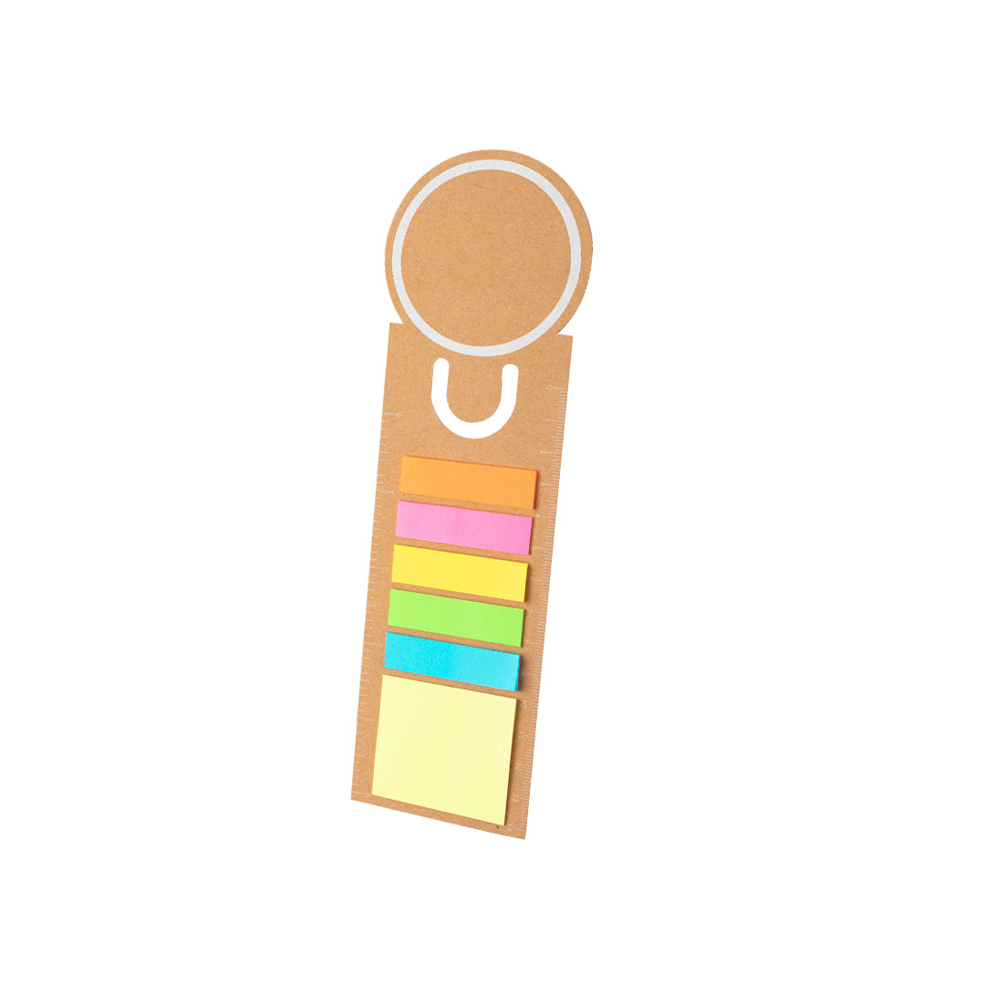 Regla marcapáginas de línea nature. En cartón reciclado y con amplia superficie de marcaje. Incluye 15 notas adhesivas medianas y 75 mini notas ahesivas