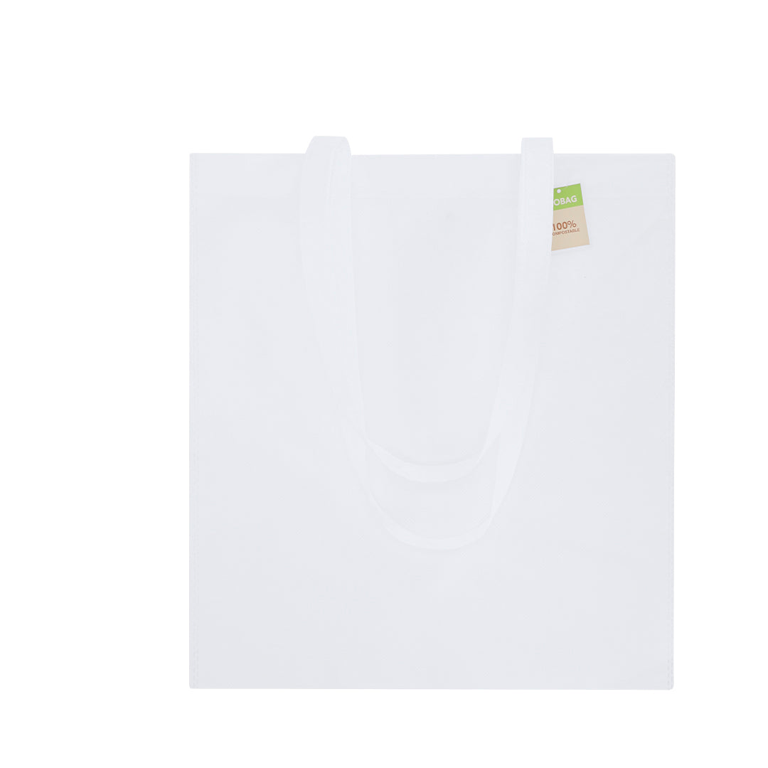 Bolsa de línea nature, fabricada en resistente material PLA -Ácido PoliLáctico-, que se obtiene a partir de recursos 100% naturales como el almidón de maíz, la yuca o la caña de azúcar, pudiendo convertirse en 100% compostable al final de su ciclo de vida útil. Tamaño 36x40 cm, de acabado termo sellado y con asas largas reforzadas de 68 cm. Resistencia de hasta 6 kg de peso.