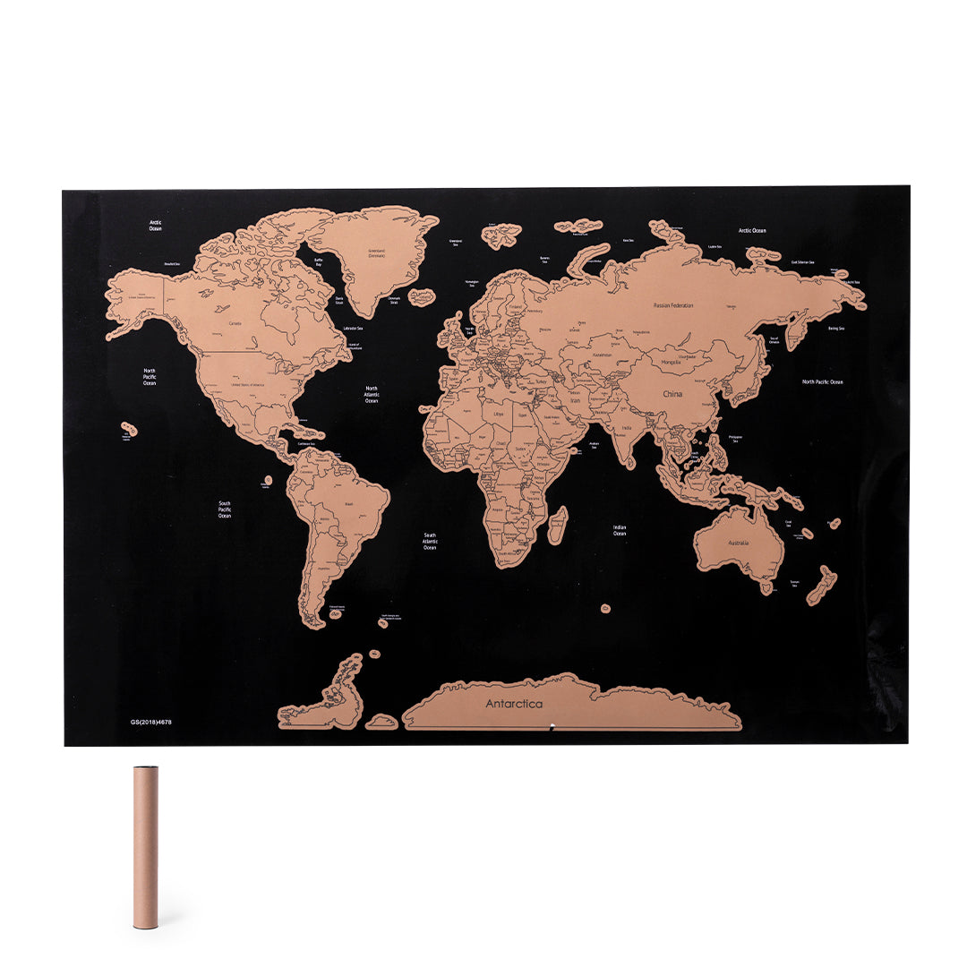Mapamundi de línea nature para los más viajeros. Fabricado en papel laminado, basta con rascar la superficie del país que se desee para que aparezca como marcado. Incluye rascador y viene presentado en un atractivo estuche de cartón de diseño eco.