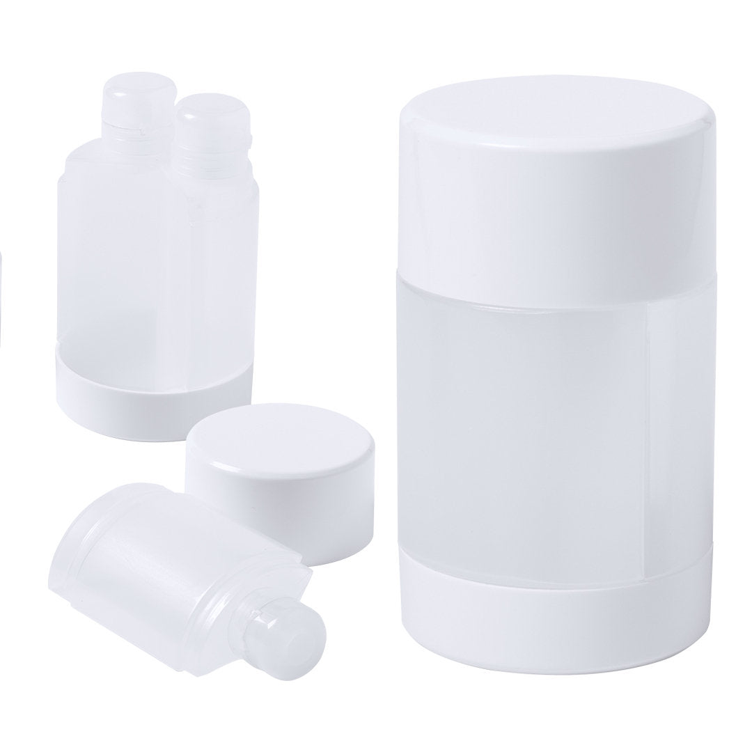 Set de viaje de 3 accesorios en resistente PP. Incluye 3 botes para gel y champú con cierre hermético. Presentado en estuche de original diseño.