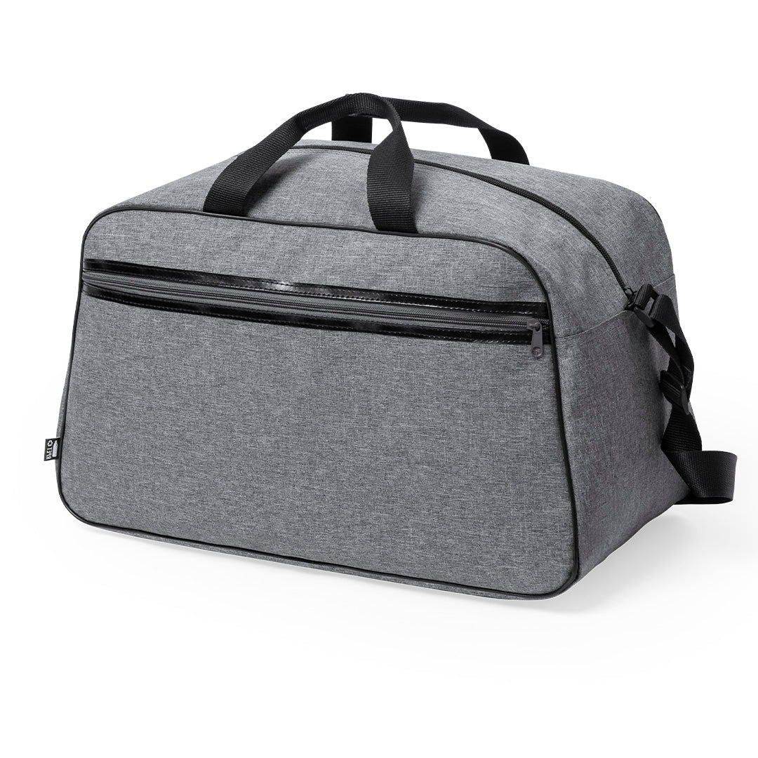 Bolso multiusos de línea nature en resistente 600D RPET efecto melange. Elaborado a partir de plástico reciclado para así fomentar la reutilización de residuos plásticos y contribuir a la sostenibilidad del planeta. De diseño urbano y con detalles en color negro, incluye 2 bolsillos de cremallera con tiradores metálicos e interiores forrados, reforzados en PVC. Asas de transporte reforzadas y cinta bandolera ajustable, con distintivo RPET en etiqueta exterior.