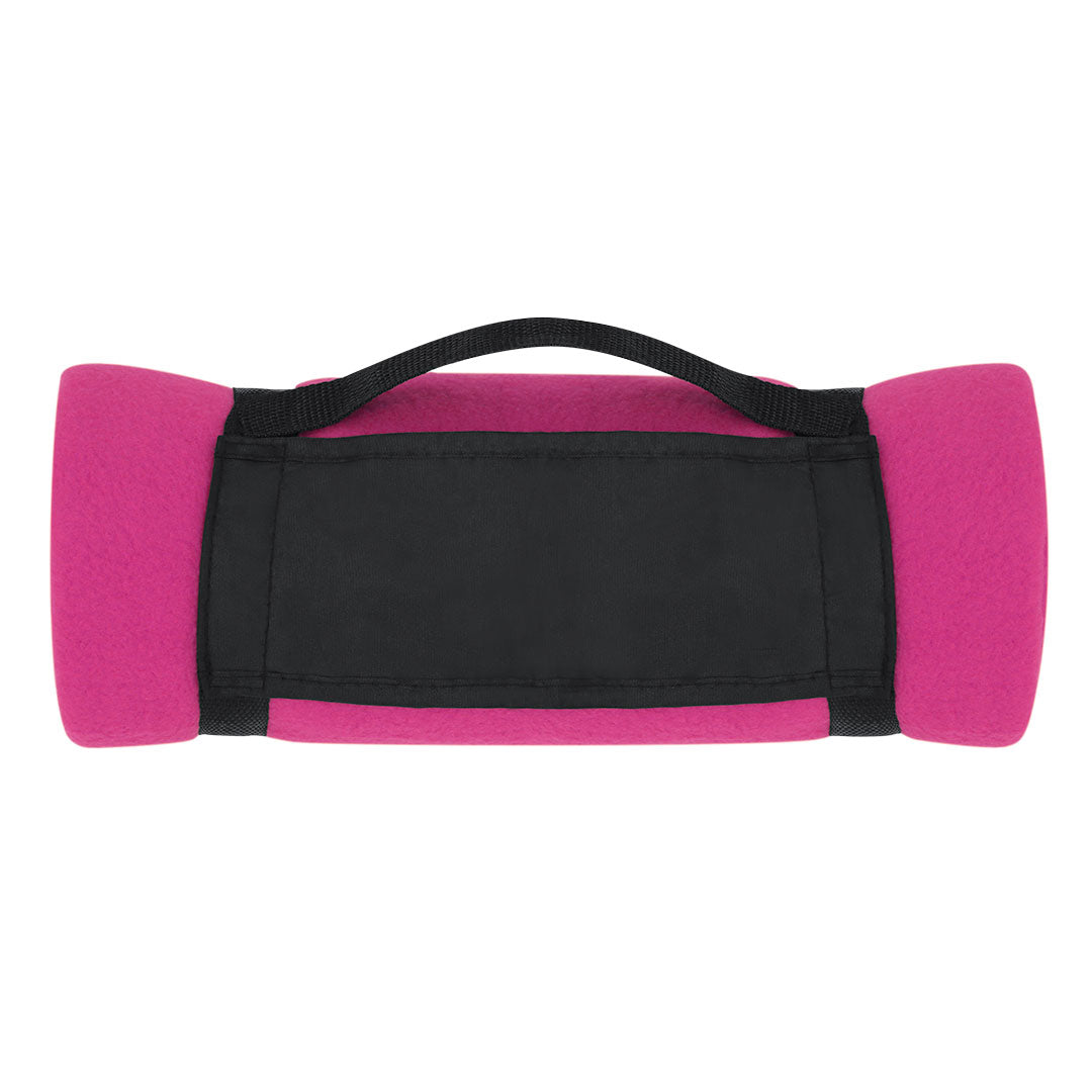 Manta de 130x160cm en variada gama de vivos colores. En material polar fleece anti-pilling de 200g/m2 y con asa de transporte de cierre de velcro en suave poliéster.